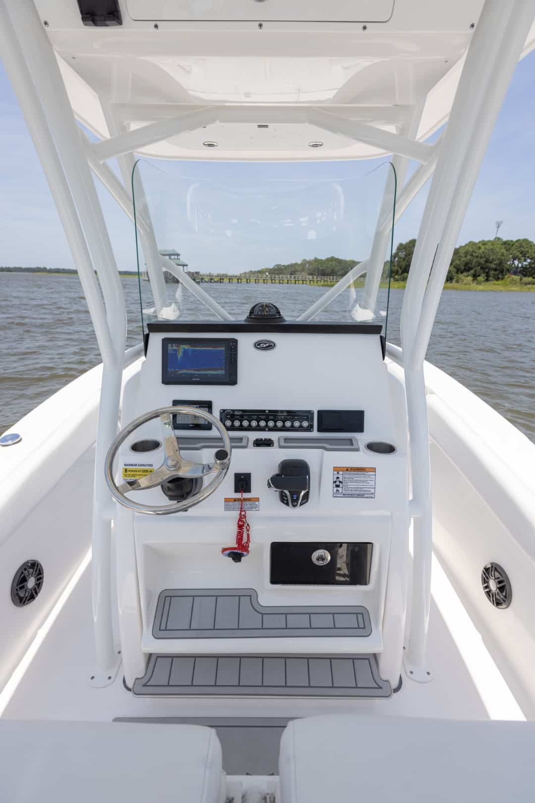 - For Yamaha mechanical motors (Dometic SeaStar hydraulic steering system with tilt helm, Two digital gauges with backlighting, Tachometer and speedometer with volt, fuel, and push button functions)
