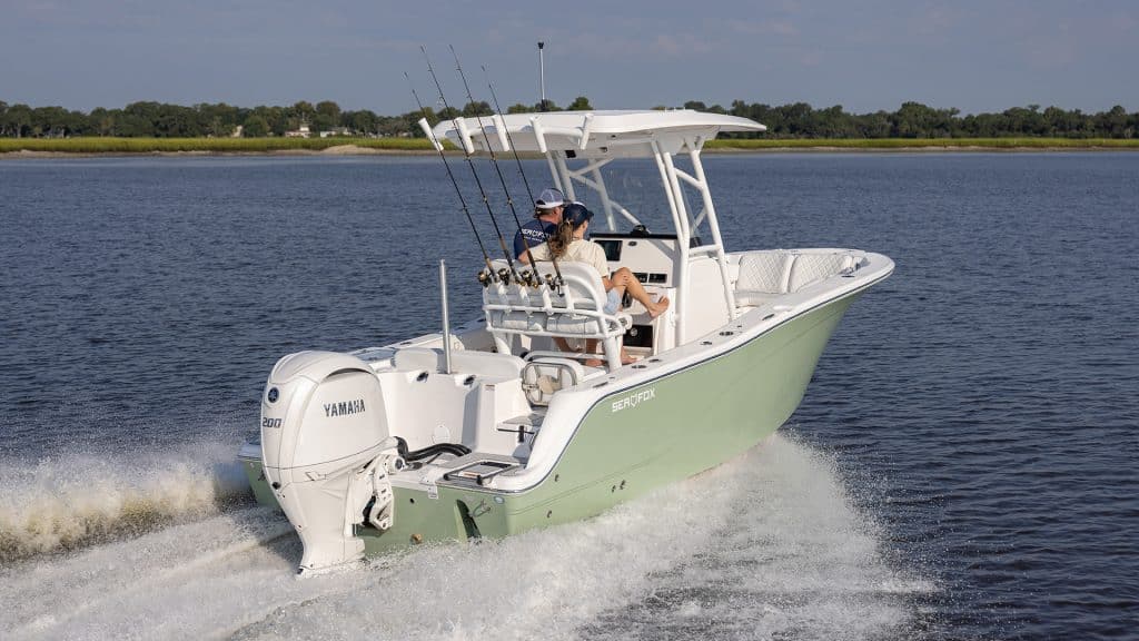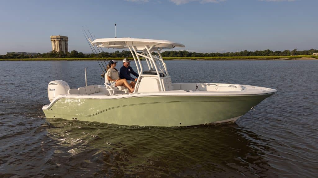 The 228 Commander is built to get your family on the water and into the action. Anglers will appreciate the pressurized aquarium livewell, bow casting platform, molded-in rod and dip net storage, removable premium cooler, and insulated aft fishbox. When it’s time to relax, comfortable bow seating, an accessible head, a great sound system, and plenty of storage make it just as enjoyable at the sandbar.