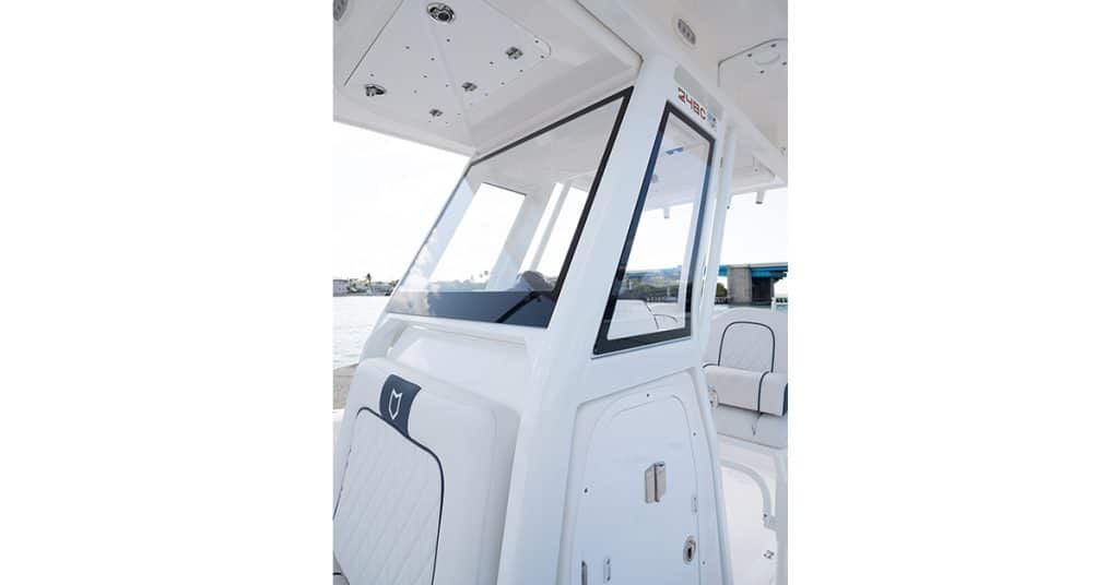 Designed for total capability, the hard top features secure molded-in storage, rod holders, 360-degree spreader lights, LED overhead lighting, a reinforced Garmin radar pad, and an illuminated switch panel.